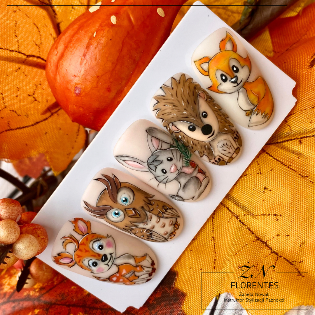 Zwierzaczki to najsłodsze ze zdobień jesiennych. Klientki szaleją na ich punkcie, dzięki czemu umiejętność zmalowania ich da Ci zdecydowaną przewagę nad konkurencją. Szkolenie to uczy staranności oraz dokładności co w zdobieniach jest bardzo ważnym elementem.