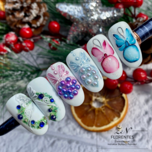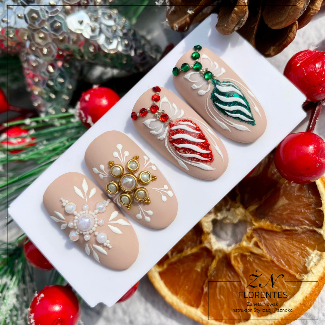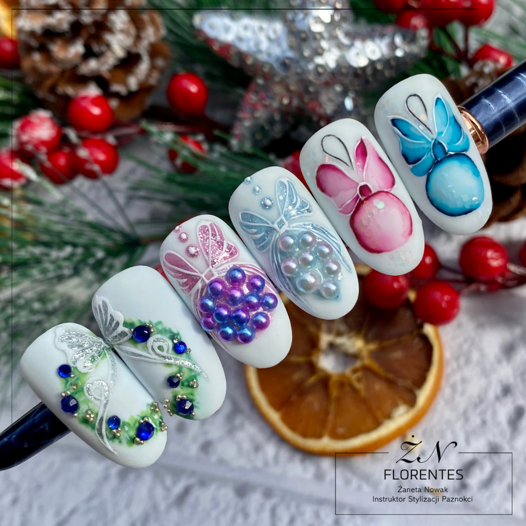 „Kryształowe święta” to szkolenie, które zawiera w sobie mix zdobień oraz technik salonowych wzbogaconych o kryształki, cyrkonie i brokaty. Bombki, śnieżynki, stroiki to inspiracje po które w okresie świątecznym sięga zdecydowana większość klientek a fakt, że są one wzbogacone o błysk tylko dodaje im popularności.